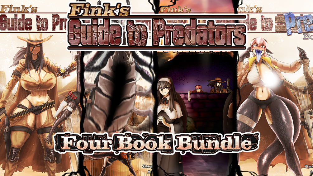 When the wasteland is full of dangerous predators, only one man dares to brave their tight, round bellies to search for the answers to these important questions. Fink’s Guide to Predators is an anthology of the adventures of two stalwart companions, an unlikely pairing of predator and prey, in an “eat or be eaten” world.